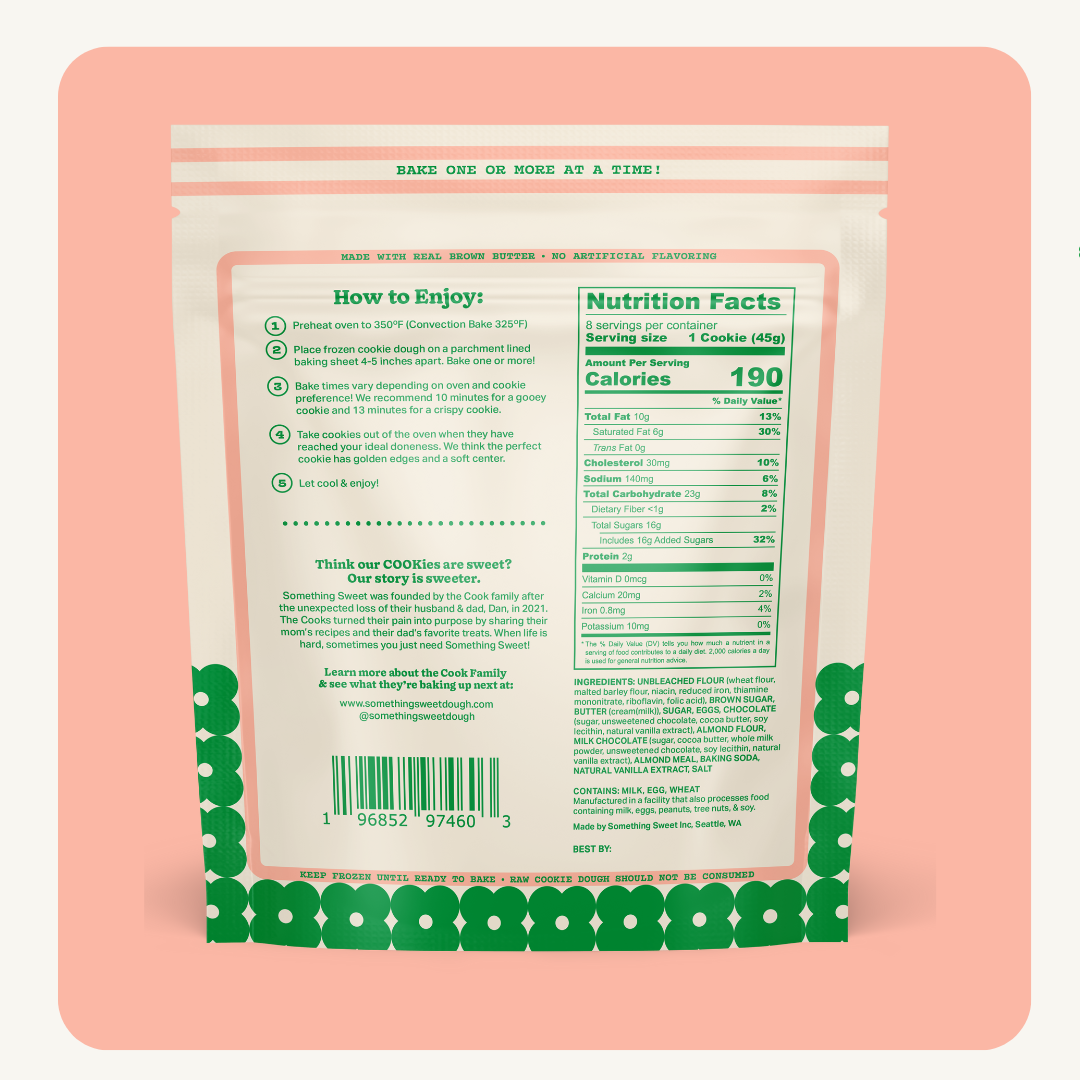 ***CONTAINS NUTS & GLUTEN*** Please note that our Brown Butter Chocolate Chip Cookies contain nut-based ingredients (Almond Flour). They are not suitable for those with nut allergies. Our cookie dough is manufactured in a facility that processes food containing milk, eggs, peanuts, tree nuts and soy. Please bake before eating; do not consume raw